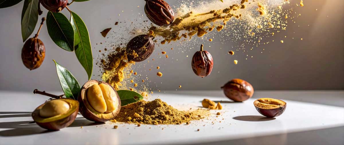 Cupuaçu Boter (Theobroma grandiflorum Seed Butter) bindt vocht en verbetert de elasticiteit van de huid. Ze is lichter dan cacaoboter en verstopt de poriën niet.